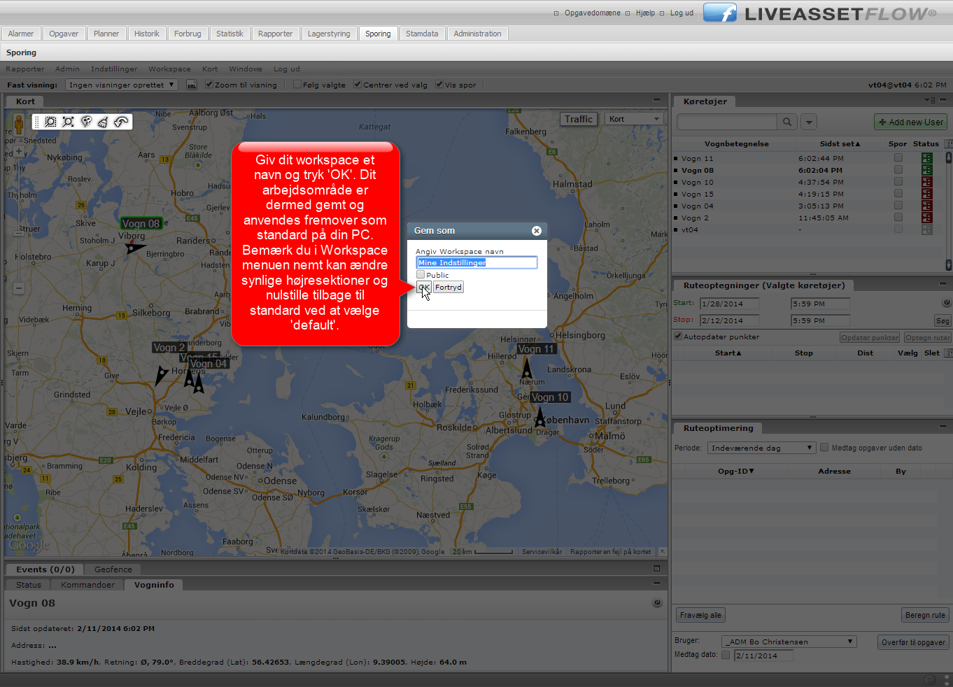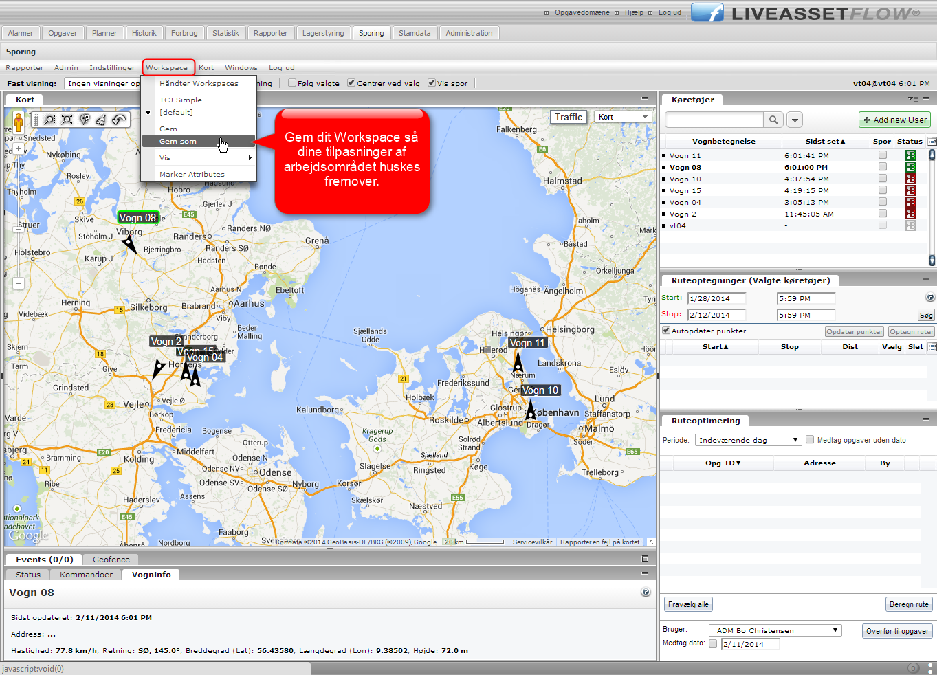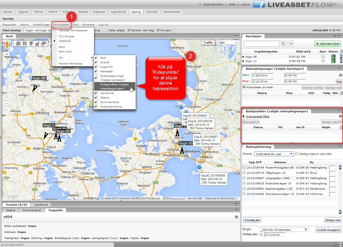 1. Få mere plads ved at skjule højresektionen ”Rutepunkter” der sjældent anvendes