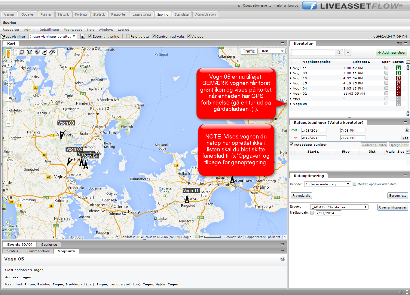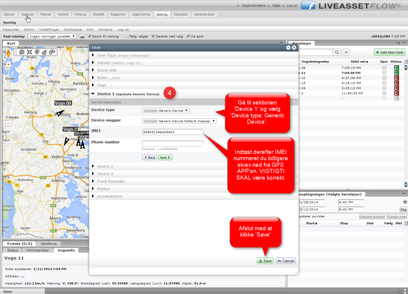 11. Log ind i Liveasset og gå til hovedfanebladet ‘Sporing’. Klik derefter under ‘Add new User’ og udfyld ‘Details’