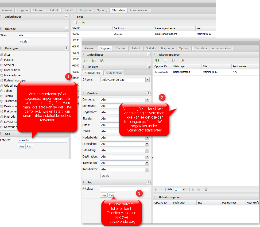 Forklaringen er som oftest at du under venstrepanelet ‘Søg’ i feltet ‘Fritekstsøgning’ har indtastet noget på et af de andre faneblade, og denne værdi er nu vandret med over på dit nuværende faneblad.