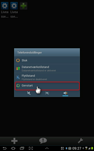 4. Genstart enheden ved at holde inde på tænd/sluk hardware knappen og vælge ‘Genstart’ (alternativt vælg sluk)