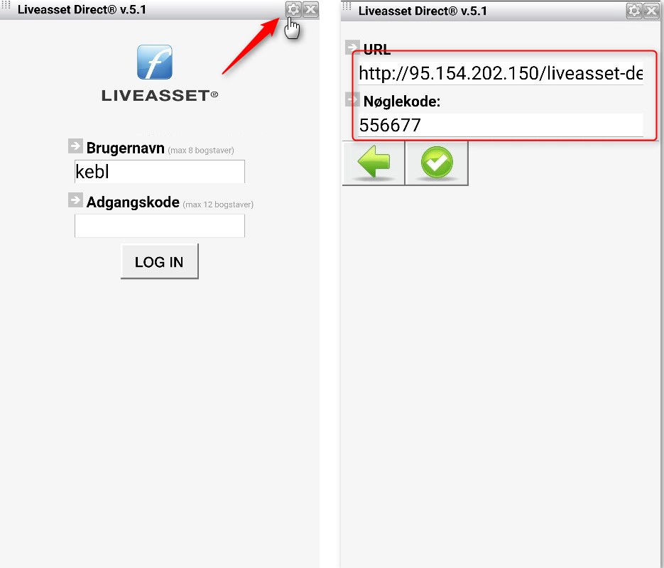 6. Konfigurer den installarede APP med din leverandørs systemlink + din virksomheds individuelle nøglekode