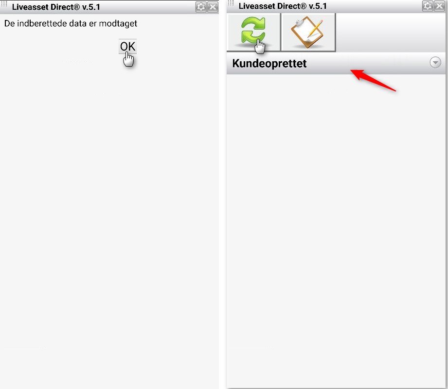 10. Vent et øjeblik til der kommer en bekræftelse og tryk derefter på opdater pilen.