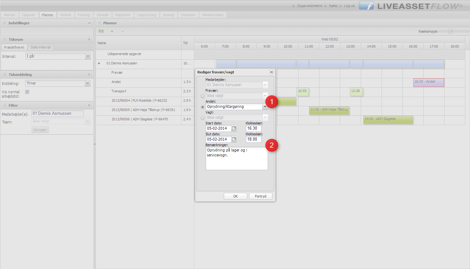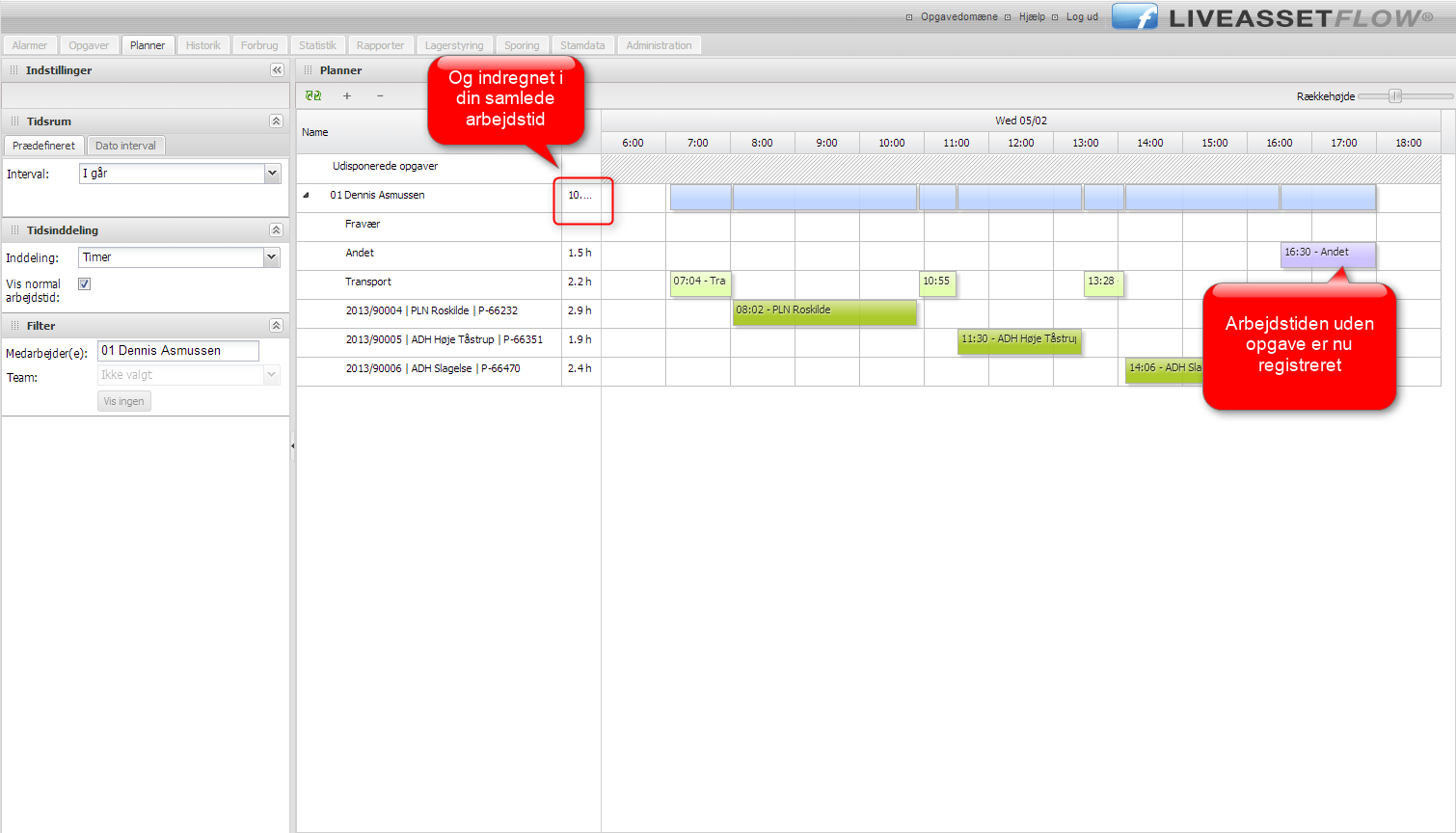3. Det var det. Lilla bjælke nu synlig i rækken ‘Andet’ og indregnet i din samlede arbejdstid.