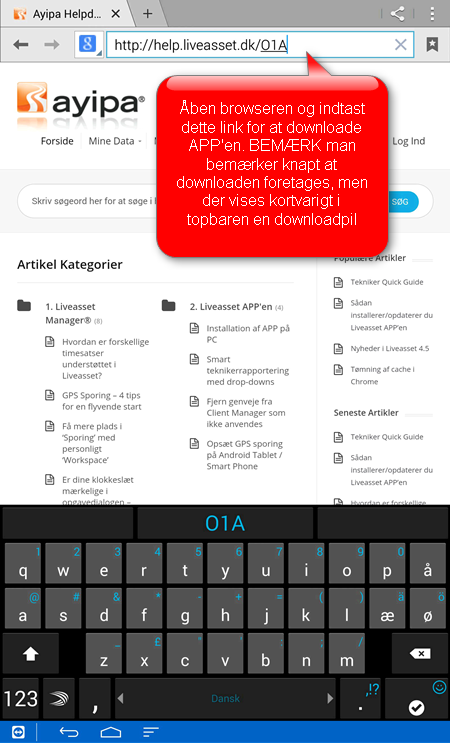 1. Åben din internetbrowser og indtast eller klik på linket: help.liveasset.dk/O1A