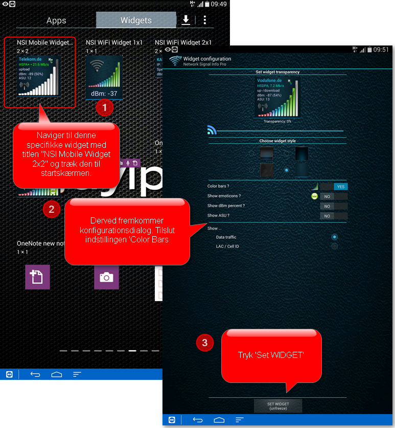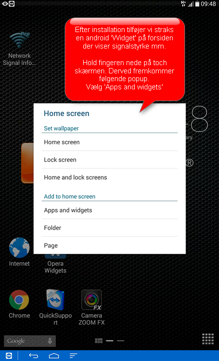 4. Hold nede på startskærmen for at indsætte Android Widget